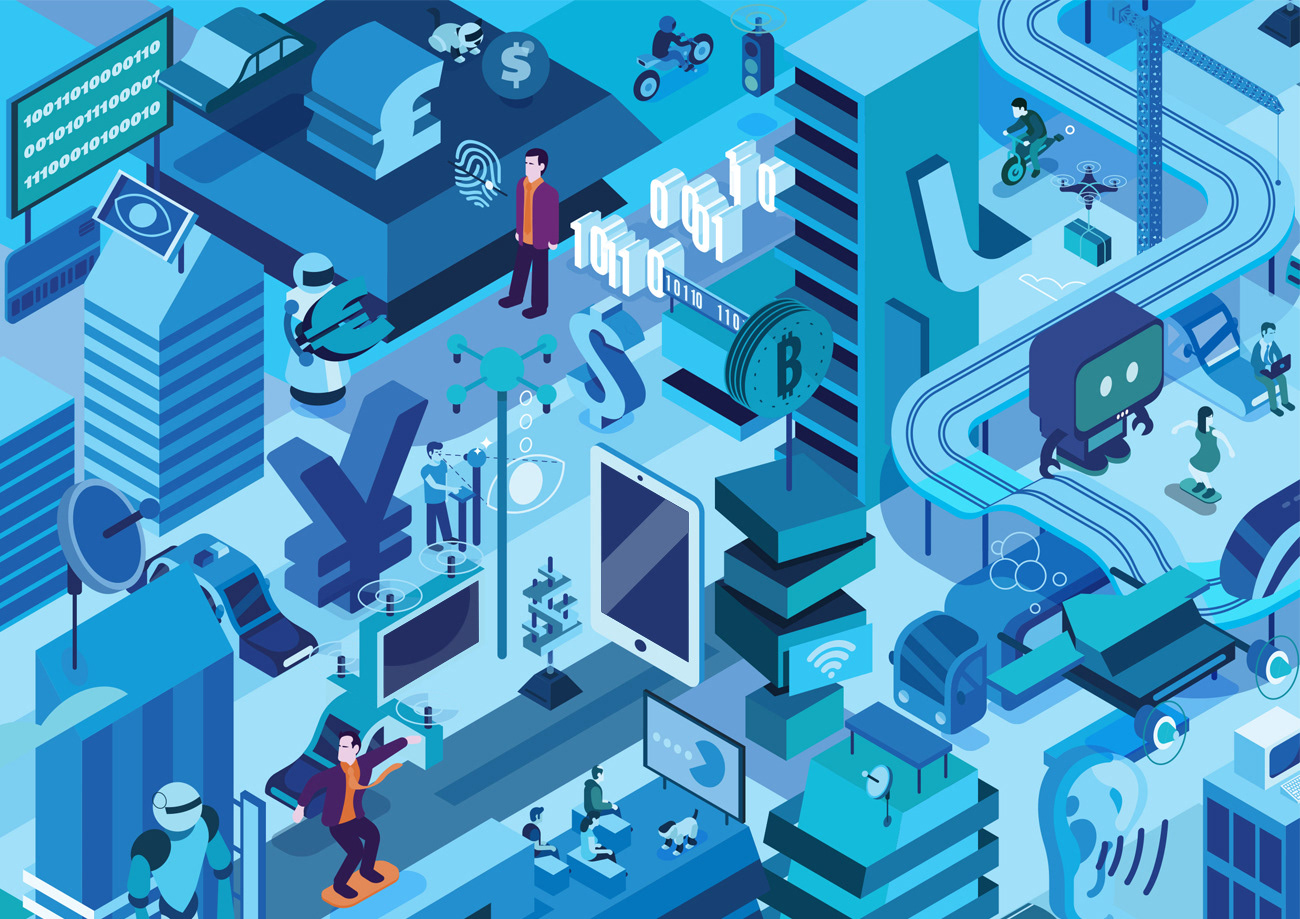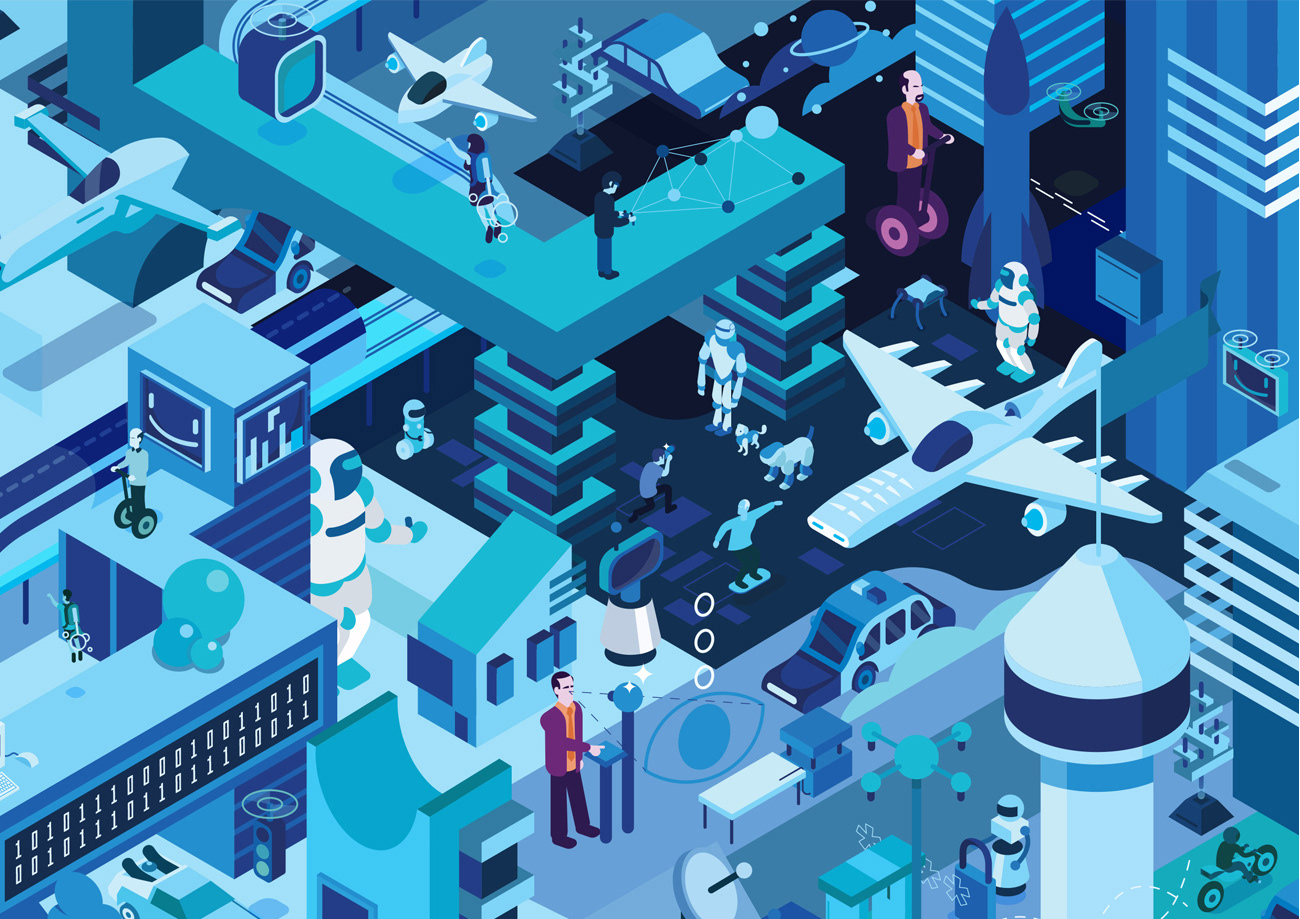 A futuristic city for KPMG (Germany) featuring robots, drones, cyber pets, space ships & hoverboards
